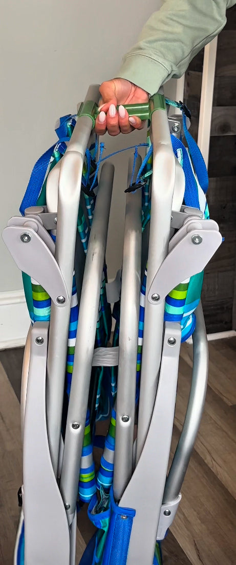 Whether you're hauling chairs for your partner, family, or friends, this compact, lightweight clip is a must-have beach essential, that allows one person to do the job for two, freeing up your hands for coolers, towels, or just holding hands.
